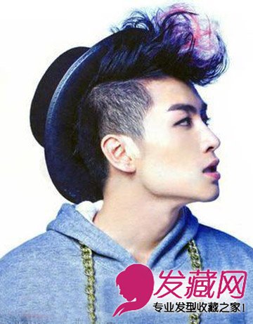 帅气的莫西干头充满潮人魅力,化上烟熏妆,竖起的刘海十分张扬,一顶礼帽搭出街头潮范。