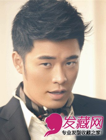 加上西装领带的衬托,演绎出了都市成功男士的风采。规整的短发,衬得那一抹飞扬的刘海格外突出,整个人温文儒雅。