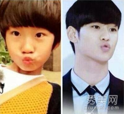 之前天天也被发现撞脸叫兽金秀贤,叫兽的魅力是很大的,《星星》中严谨的都敏俊也难免有这样二是的时候,嘟嘴的造型与天天是不是很神似?同款的齐