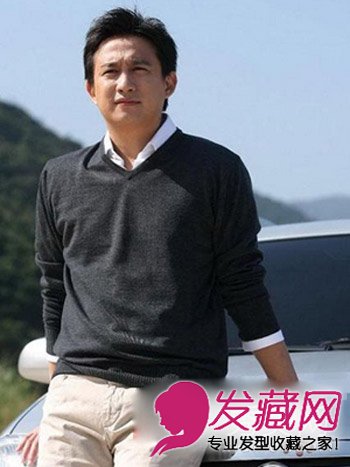 这一款休闲发型带着一种很温暖的感觉,黑色V字衫与白色衬衫,无比儒雅,无比绅士