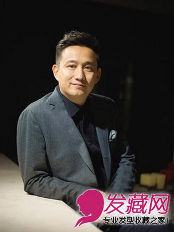 两侧夹光造型,而中间的发型整个采用很时尚的抓以形式,微微的笑容给人一种很温暖的感觉,搭配西装,一派成功男士的光景。