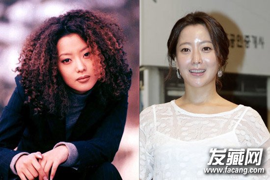 韩国第一美女也有雷人的时候,爆炸头与浓妆的金喜善像是在极力装嫩的大妈;而轻薄的韩式妆容,将头发随意盘于脑后,让金喜善看起来非常有气质。