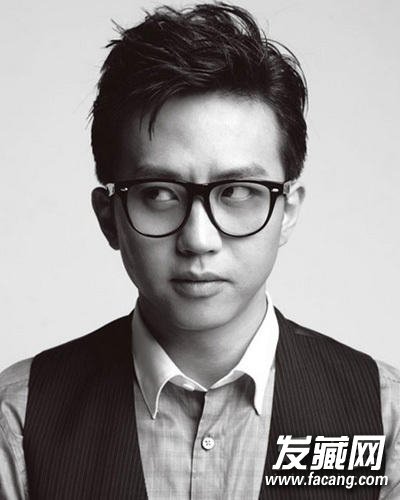 将整体发丝修剪出超强的层次后,偏向一侧梳去,增加动感,额头的一撮留发更是展现邓超的搞怪个性。