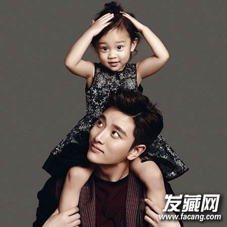 典型的飞机头,乃爸扬翘的刘海酷帅有型,小甜馨柔软的发丝扎成花苞,骑在乃爸身上,享尽宠爱的小公主。