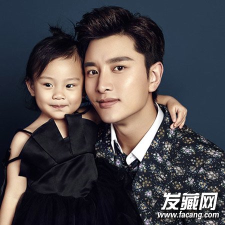 深色的裙子,卷翘小花苞头,调皮的表情,这样的甜馨就像一个小魔女,而乃爸简单的发型更显大气稳重。