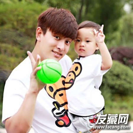 这对活宝父女,都以棕色发色亮相,增加时尚感,乃爸大片的刘海挡住额眉,甜馨超纯净的短发,任性可爱,剪刀手造型,尽显呆萌。