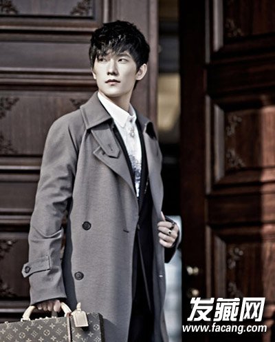 稍长的刘海经过精心的修剪,喷上啫喱水制造微湿效果,加上一身的风衣装束,凸显英伦范。