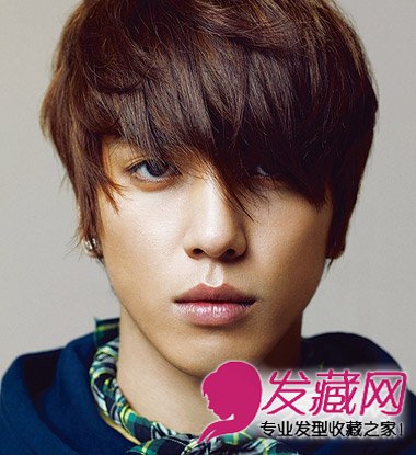 遮住额头,搭在眼帘前个性神秘,深棕色染发,微烫发,自然率性的阳光气息。