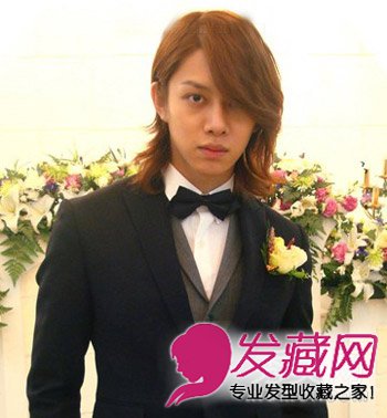 这是金希澈的长发造型,斜分刘海加上是的染发,完美展现男生俊俏的外面,再搭配一套时尚好看的服饰,更加凸显男神气质。