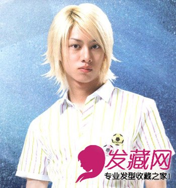 一款大胆的染发颜色加上斜分的中长发型,很好的展现金希澈俊俏小脸,这款发型很适合脸型较好的男生。