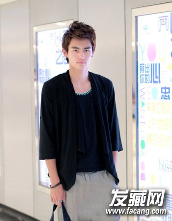 再是一款很显时尚型男范的街拍造型,这种简单的将短发进行时尚的纹理烫造型处理,而配合清样的露额式短发造型相搭和这种休闲式的哈伦造型同样很显时尚潮流气质感。