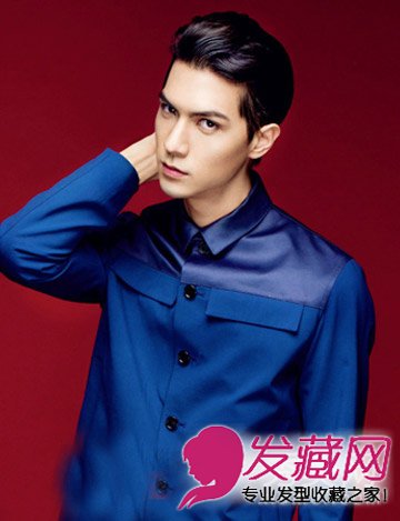 大背头也称狼奔头是比较适合带点个性风格的男生,不在是死板的三七分,发胶将湿发固定成型,蓝色拼接款衬衫,时尚简约男人味十足。