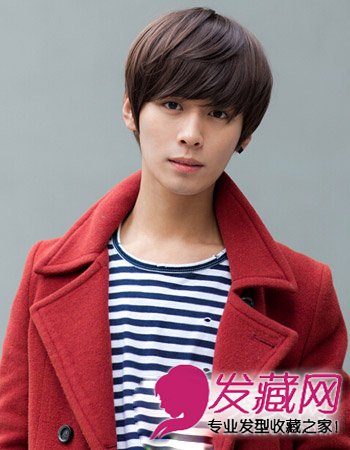 厚重的刘海设计,搭配深棕色的染发颜色,非常适合秋冬的季节,再加上两鬓的发丝修饰,完美展现那是的帅气五官。