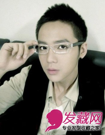 这款圆寸显得比较时尚,独出心裁的将头顶的发丝打造出子弹头的样式,起到拉长脸型的效果,时尚而且有个性,搭配上眼镜显露出文质彬彬的一面,