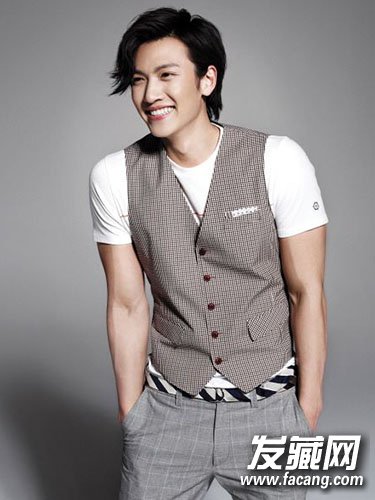 一边长刘海微微翘起,稍显蓬松的黑色短发加上自信笑容,尽显年轻英俊的绅士魅力。