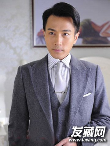 ,露出光洁的额头,搭配笔挺的西装,帅气的脸庞,突显十足民国大少风范。