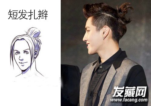 把头发后部收拢,绑扎一个小辫子,显眼又帅气,俏皮的小束辨更适合个性的男生。