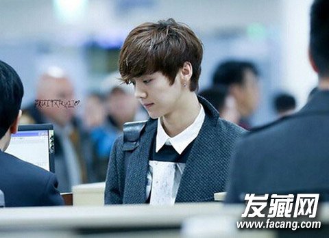 在发型上,棕色厚刘海衬托了鹿晗的呆萌,厚刘海是鹿晗比较钟情的发型。