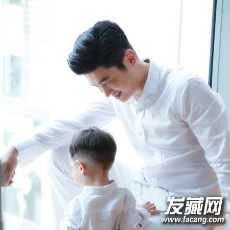 打卷的发丝分开理出饱满状,满眼爱意地看着嗯哼大王,凸显作为父亲的稳重。