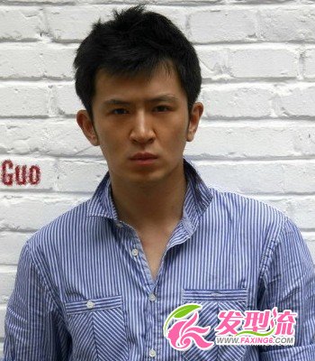 中间刘海过长两侧额际形成视觉上的强烈对比,显现出小脸效果。搭配经典的条纹衬衫,休闲范儿十足。