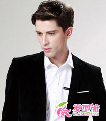 稍显蓬松凌乱感的男士发型,注入了时尚元素,很有潮男范儿。露额的设计让男士的五官更精致,很有杀伤力,是非常适合职场男士的一款英伦发型。白色衬衣黑色西装,帅气迷人!