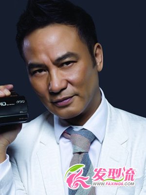 魅惑的眼神很有杀伤力哦,任达华采用微翘的个性刘海来展露他无穷的男人味!修剪干净的鬓角让整体看上去清爽无比,搭配白色西装,很经典哦!