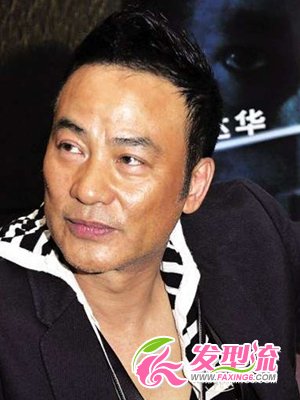 任达华看上去也是经历过岁月的磨练的,修剪干净的鬓角及无刘海的
