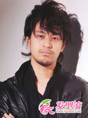 胡渣、凌乱感蓬松感的卷发让人联想到男生手拿一把吉他在台上疯狂的演奏!打造出另类的质感是这款发型的重点,长长的刘海制造出一丝丝卷度,微微的遮住眉目让男生看上去都了一点点神秘气息!搭配黑色的皮夹克,气场十足!
