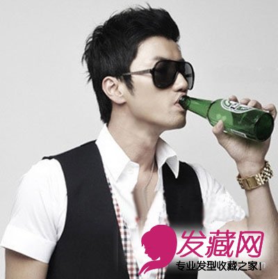 黑色男士短发发型,微卷的刘海让造型充满了时尚气息。酷感十足的黑色墨镜让我们感到一丝神秘感,搭配衬衫马甲很具有稳重和大气。