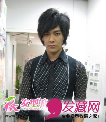 ,斜刘海以及头顶部位的头发形成了很饱满的弧线,与发量较少的一侧短发形成不对称感,显得独特新意,再加上发色的自然黑,更好的诠释了他的酷与帅!