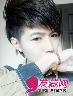 一直受到时尚潮男们的喜爱,长长的斜刘海遮盖住额头,修饰男生俊朗轮廓的同时,散发着淡淡光泽的头顶直发,高高蓬起的发型让这款好看的男生发型充满着秀气感。