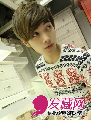 同样具有韩范儿气质的斜刘海男生发型图片,棕褐色的染发色让男生拥有低调大气的气场,有质感的发丝整齐地梳理,一款有型的韩式男发就打造出来了。