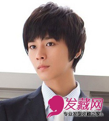 小编点评:修剪得有点细碎的刘海给人感觉十分清爽活泼,两鬓的头发更带一丝小男生的清新俊美,黑色的自然发色非常简单自然。