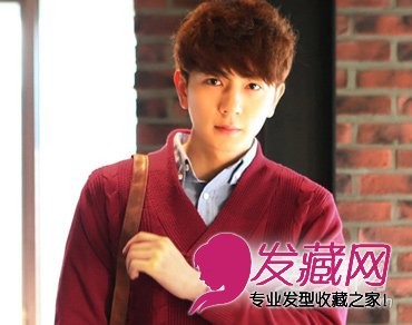 韩范微卷短发烫发,花样美男范尽显,覆盖额头的刘海完美修饰脸型轮廓,浅棕色系的染发,显清秀阳光。搭配红色系针织毛衣又凸显了一丝花样美男范。