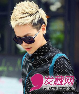 这款极具立体感的男士短发发型,利用发蜡抓取出立体的感觉,增加了男生发型的时尚潮流气息,米白色挑染的染发颜色的发型图片,更显时尚个性魅力,两鬓的发丝修剪的很是干净利落,是一款很有个性的男生发型