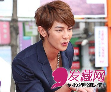 ,浅棕色的染发颜色,显阳光帅气,微微斜分的刘海打造完美脸型轮廓。