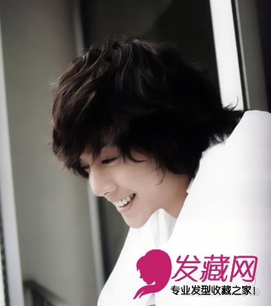 超绅士气质的韩国男生发型,浅浅的红色,优雅男人味在头顶,轻轻的卷曲,有规则的发型打理,配上温暖笑容,亲切阳光男人形象很MAN很迷人。