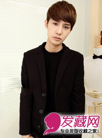 简约的男生蓬松发型,帅校草味道尽显,没有分线的刘海巧妙修饰长方脸型,栗色系的染发,显时尚阳光。