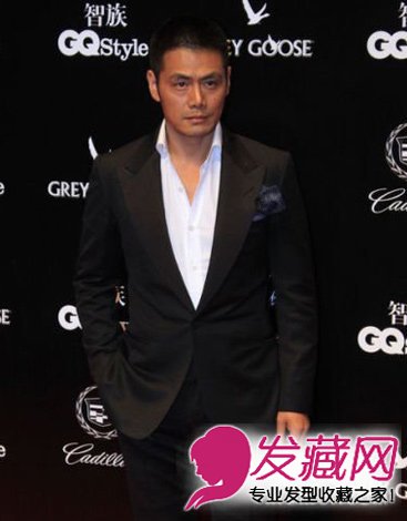 简单利索的小平头,搭配黑色西装,里面半开的白色衬衫,稳重而不羁。