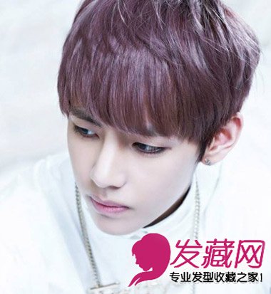 棕红色头发凸显男孩白皙的肤色,配上整洁的定位烫处理,齐刘海短发可爱又抢镜。