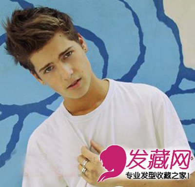 发丝集体向上,打造出向上竖起的造型,为你赢得阳光型男的称号。头顶较长的头发烫上简单的微卷,蓬松凌乱却非常帅气有型,棕黄色的发色更是非常时尚潮流。