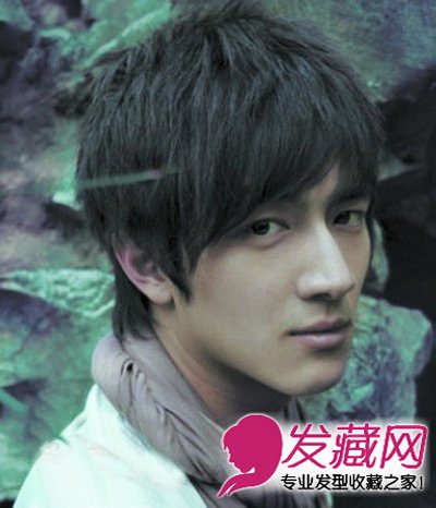 这款厚重齐刘海短发阳光帅气,高额头被刘海包住,很好的修饰了脸型适合长脸、圆脸的男生。