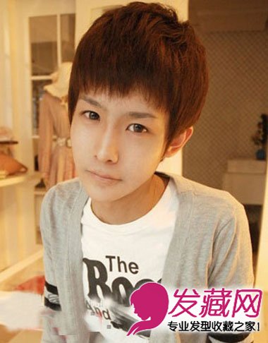 栗色是比较温暖的色调,适合秋冬季节,90后男生,清爽的齐刘海短发,不失呆萌,整体呈现出可爱阳光感。