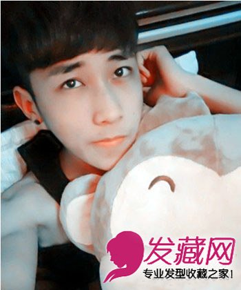 染成棕色,头顶头发随意烫出蓬松感,让该男生非常小脸与正太帅气。