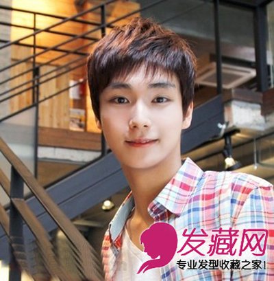,修剪得碎碎的刘海修饰男生帅气的五官,有层次感的秀发让男生看起来显得比较高,自然黑色的