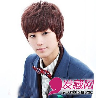 这款微卷的男生发型,碎碎的刘海很好的修饰了长脸脸型,自然棕色的染发凸显了男生白皙的皮肤,这款纹理烫短发也是非常受矮个子男生欢迎的哦。