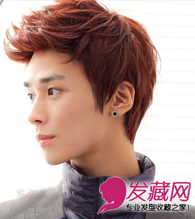 这款男生发型是非常经典耐看的,微卷的斜刘海让整款发型更加帅气有个性。酒红色染发透露着非主流的气息。蓬松微卷的卷发发丝十分适合矮个子男生。