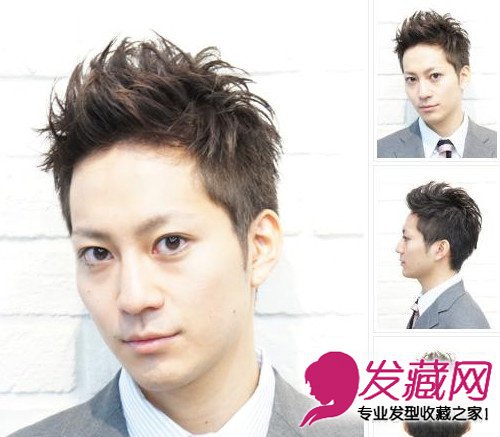 蓬松向上竖起的刘海,个性时尚,但是这款发型不适合脸型太长的男士们。