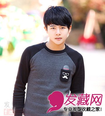 厚重的斜刘海修出立体帅气的五官,自然黑色发色显得厚重饱满质感十足,清晰干净的