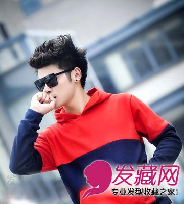 ,头顶处用发蜡竖立起来,有点低调张扬的感觉,无刘海造型设计,尽显阳光大男孩形象。